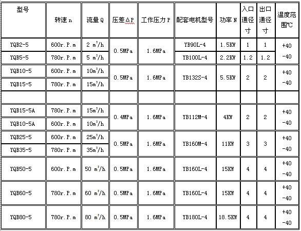 丙烷泵工作性能參數(shù):